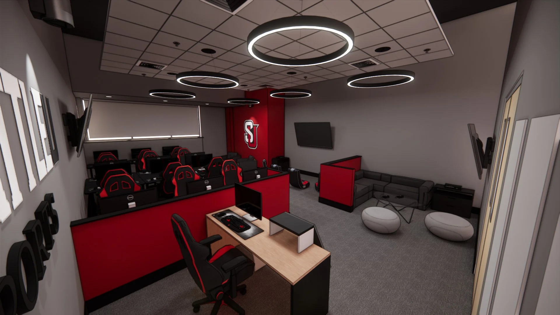 Seattle University's Esports project is a dedicated space on campus with built-in hardware & software for student competitions & entertainment. The space is used for team intercollegiate competition, local campus competition, & casual gaming in multiple group computer settings. The space also has a large furniture setting for board games.
